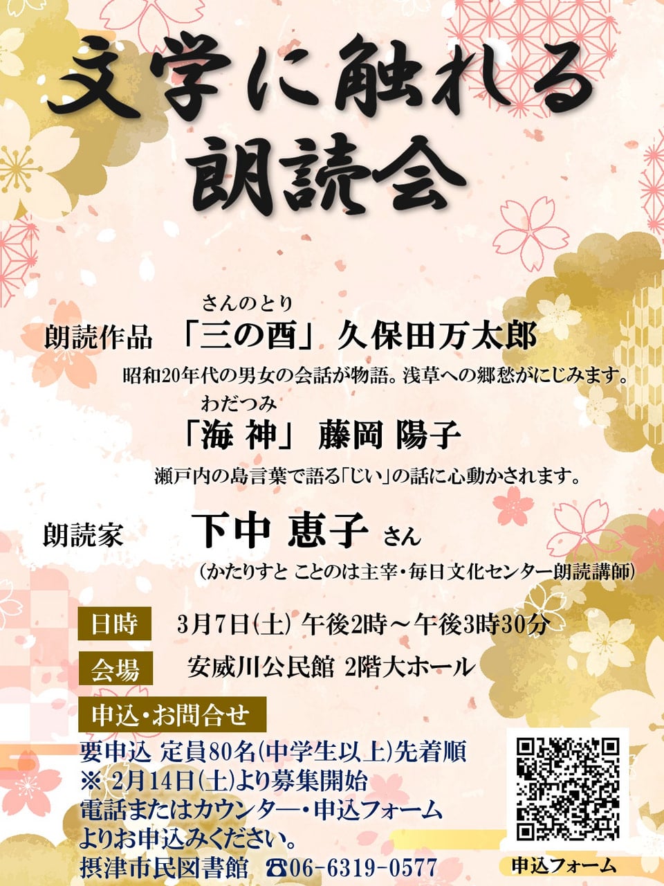 今年の朗読は「三の酉」(久保田万太郎著)・「海神」(藤岡陽子著)です。